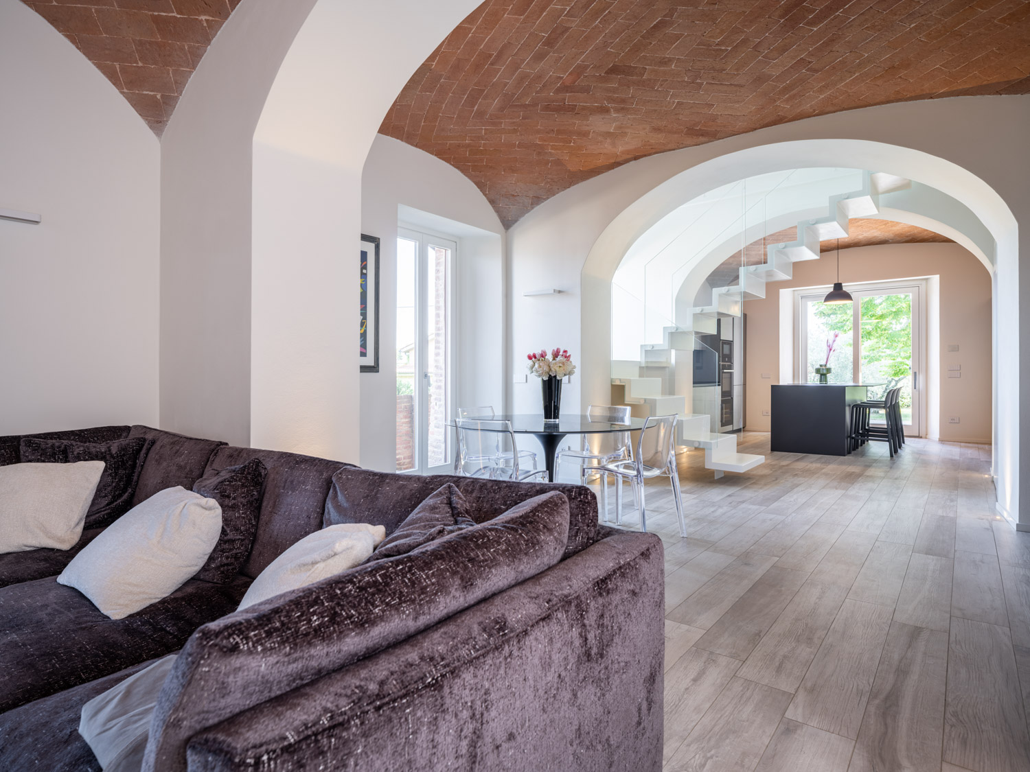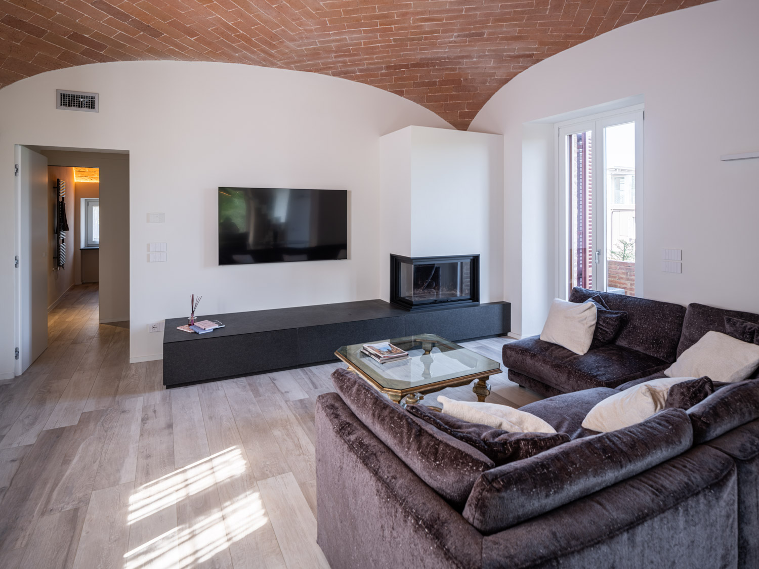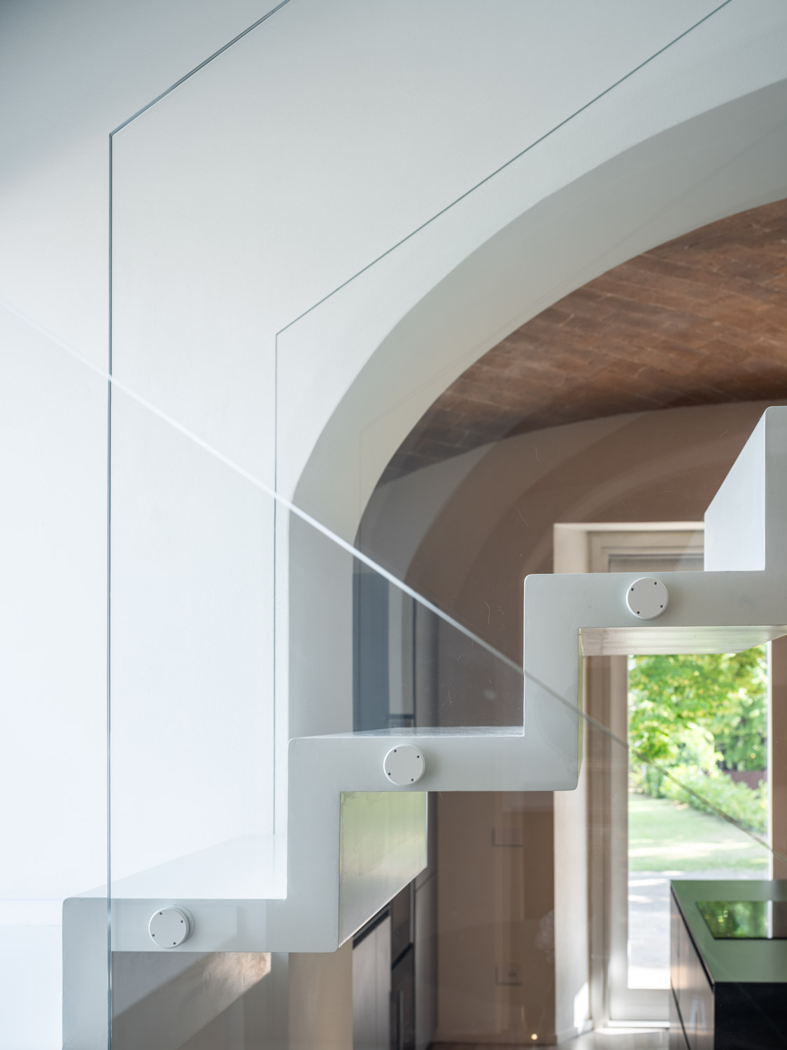 Luce, archi e trasparenze dialogano in equilibrio, restituendo un ambiente dove il contemporaneo non contrasta il passato, ma lo accompagna con rispetto e coerenza progettuale.