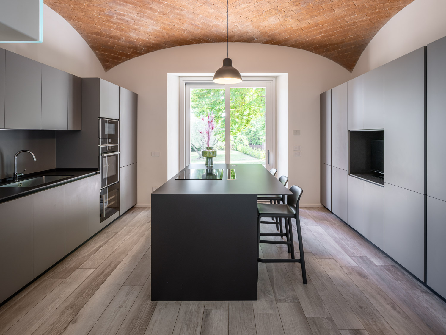 Fulcro del progetto è la volta, che da elemento statico si trasforma in protagonista silenziosa, accogliendo e diffondendo la luce naturale in modo diffuso e calibrato. L’intervento ha privilegiato linee pure, dettagli essenziali e materiali coerenti, in grado di esaltare la bellezza sobria dell’architettura senza sovrastrutture.